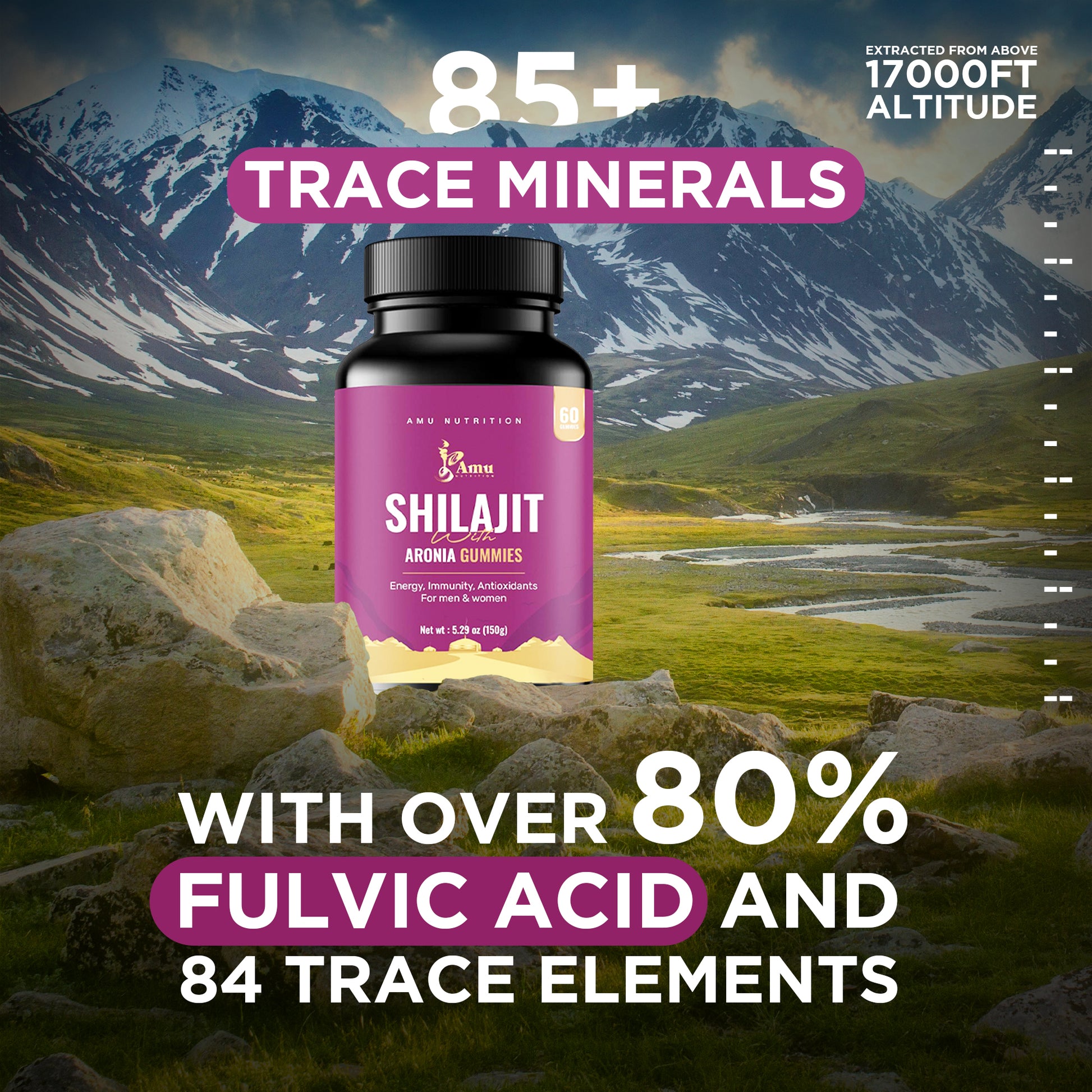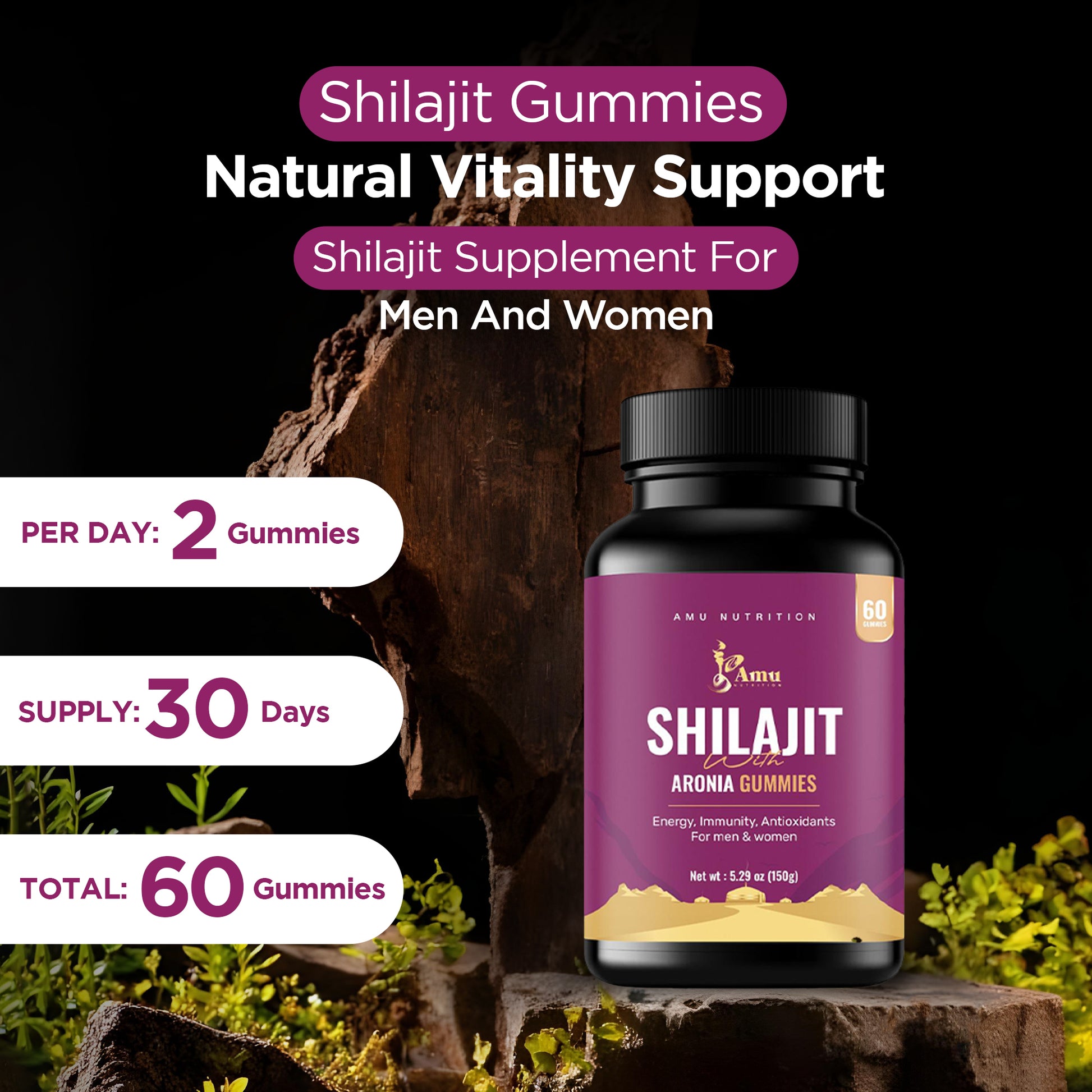 Shilajit with Aronia Gummies for Men & Women 60 ct