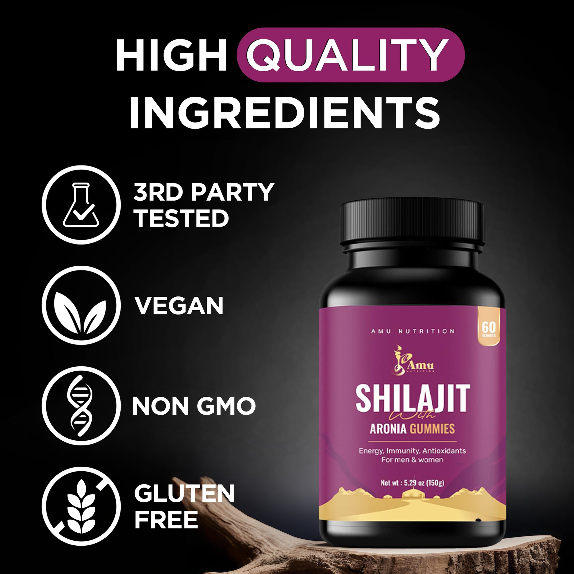 ✔ Premium Mongolian Shilajit – Sourced for maximum purity and effectiveness, third-party lab tested.