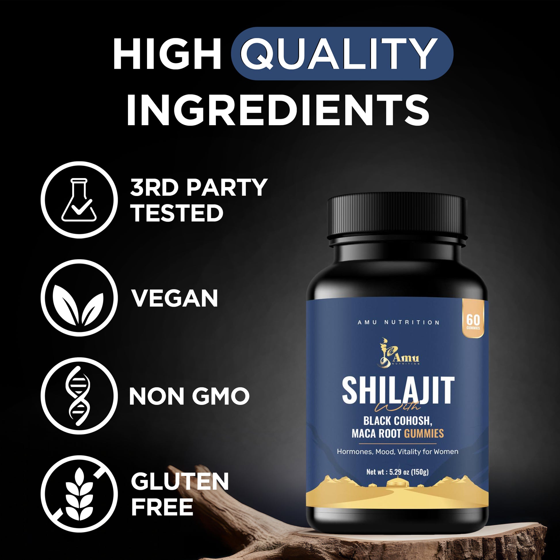 Shilajit with Mace root, Black Cohosh Gummies for Pre-Menopause, Menopause, Post-Menopause Women– 60 ct